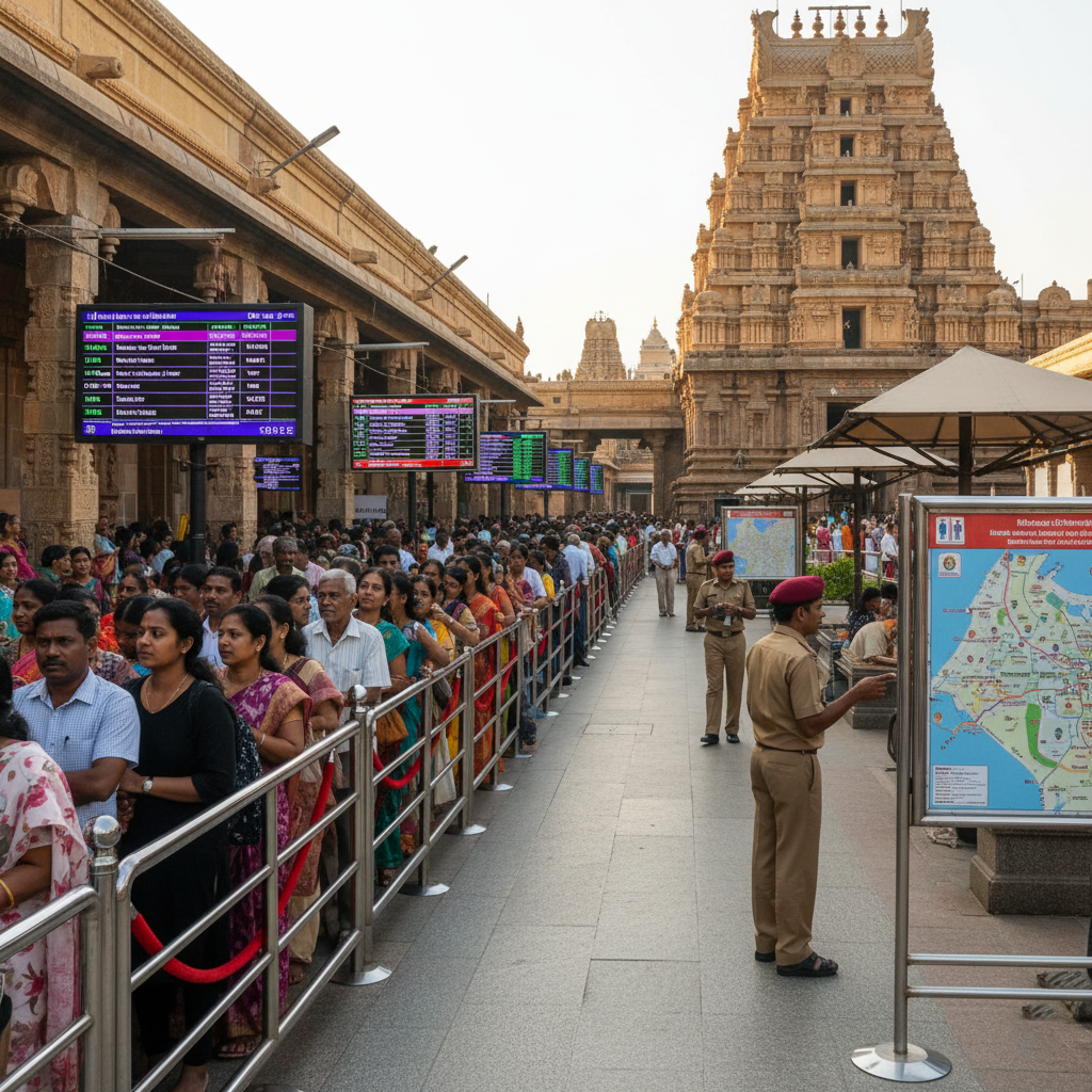 तिरुपति में मंदिर प्रशासन ने श्रद्धालुओं की सुविधा बढ़ाने के लिए नई व्यवस्थाओं को लागू किया है। इनमें कतार प्रणाली में सुधार, यात्री विश्रामालयों का विस्तार और ऑनलाइन सेवा बुकिंग की सुविधा शामिल है। अधिकारियों के अनुसार तीर्थ क्षेत्र में प्रतिदिन बड़ी संख्या में आने वाले भक्तों को ध्यान में रखते हुए ये बदलाव आवश्यक थे।