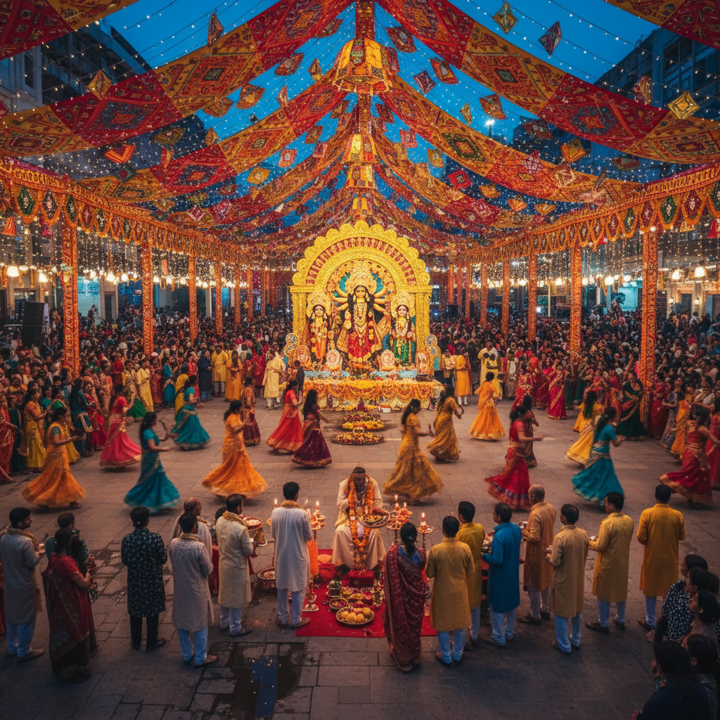 नवरात्रि: पंडाल-प्रबंधन, गरबा-स्थल व देवी-पूजा की योजनाएँ